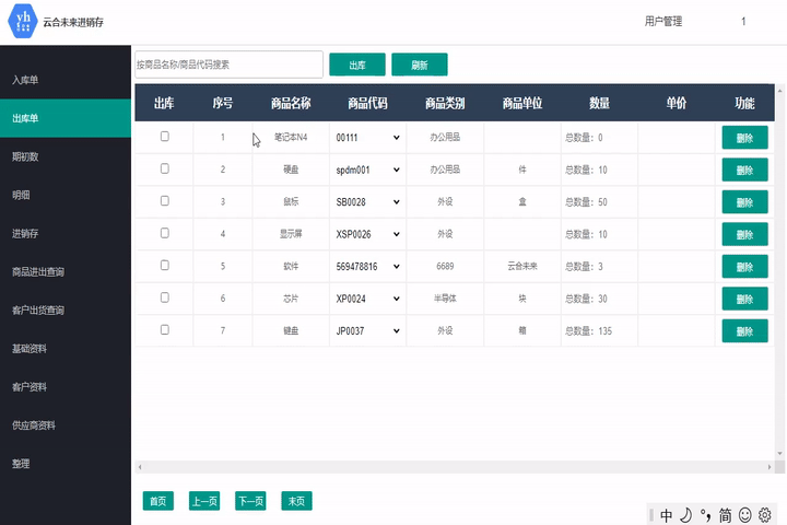 此模塊用于錄入出庫信息,可根據商品名稱或商品代碼搜索當前庫存中的物品。