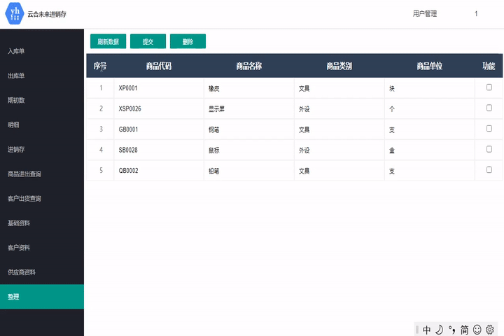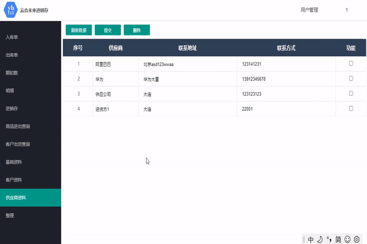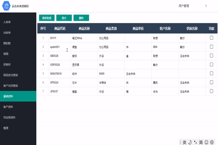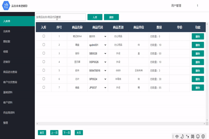 此模塊用于錄入入庫信息,可根據商品名稱或商品代碼搜索當前庫存中的物品。